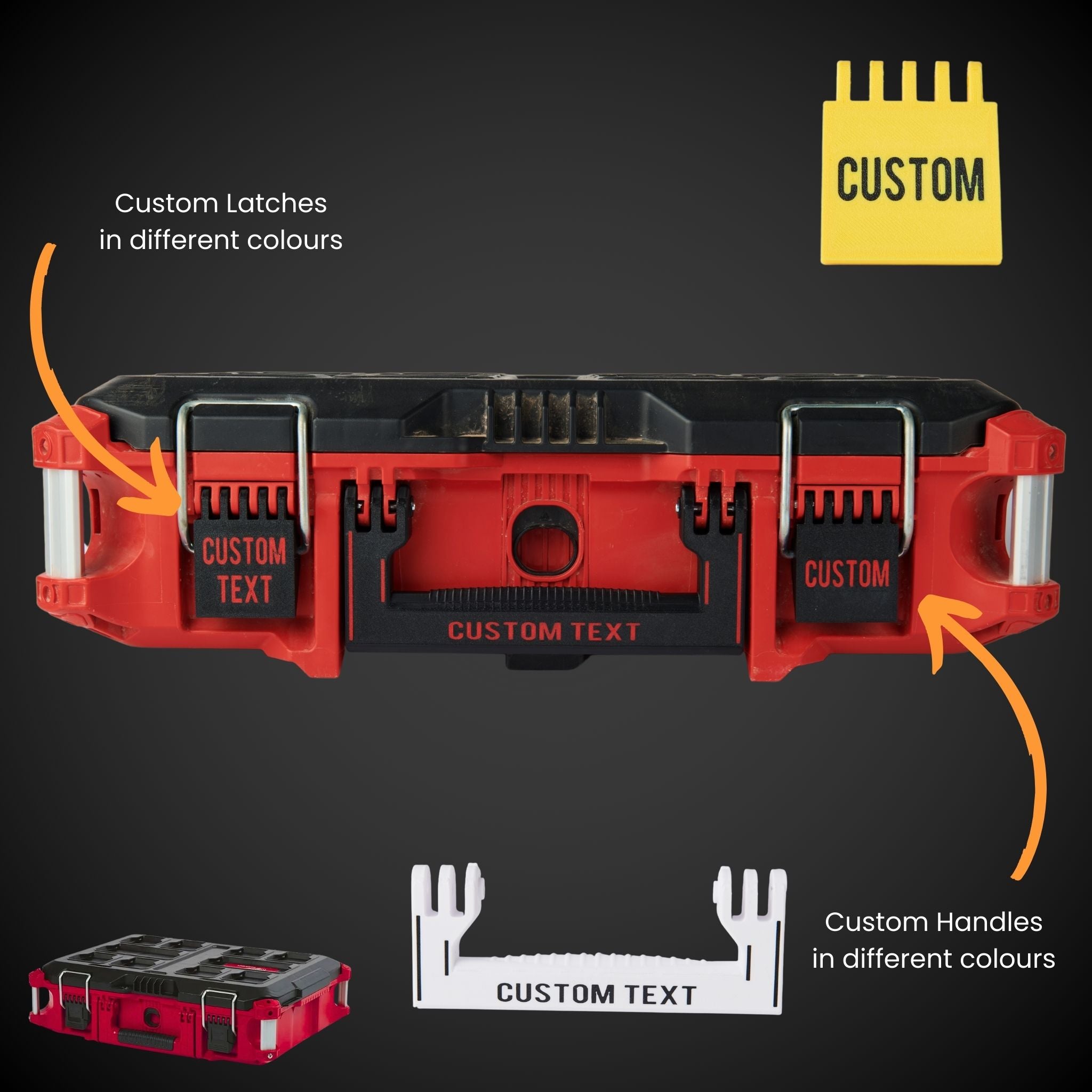 Your Packout deserves better. Customise your latches with your text and colours to stand out on site!