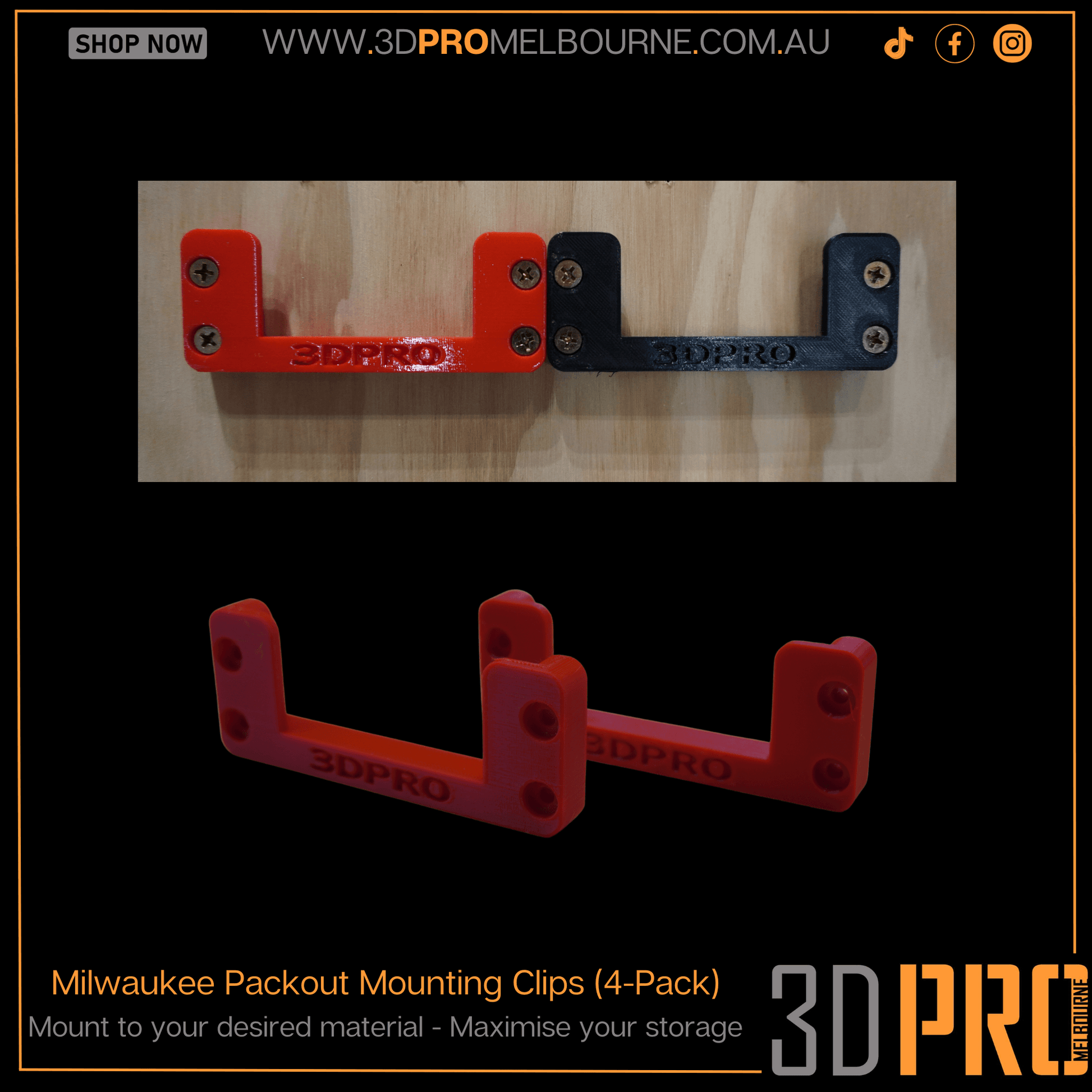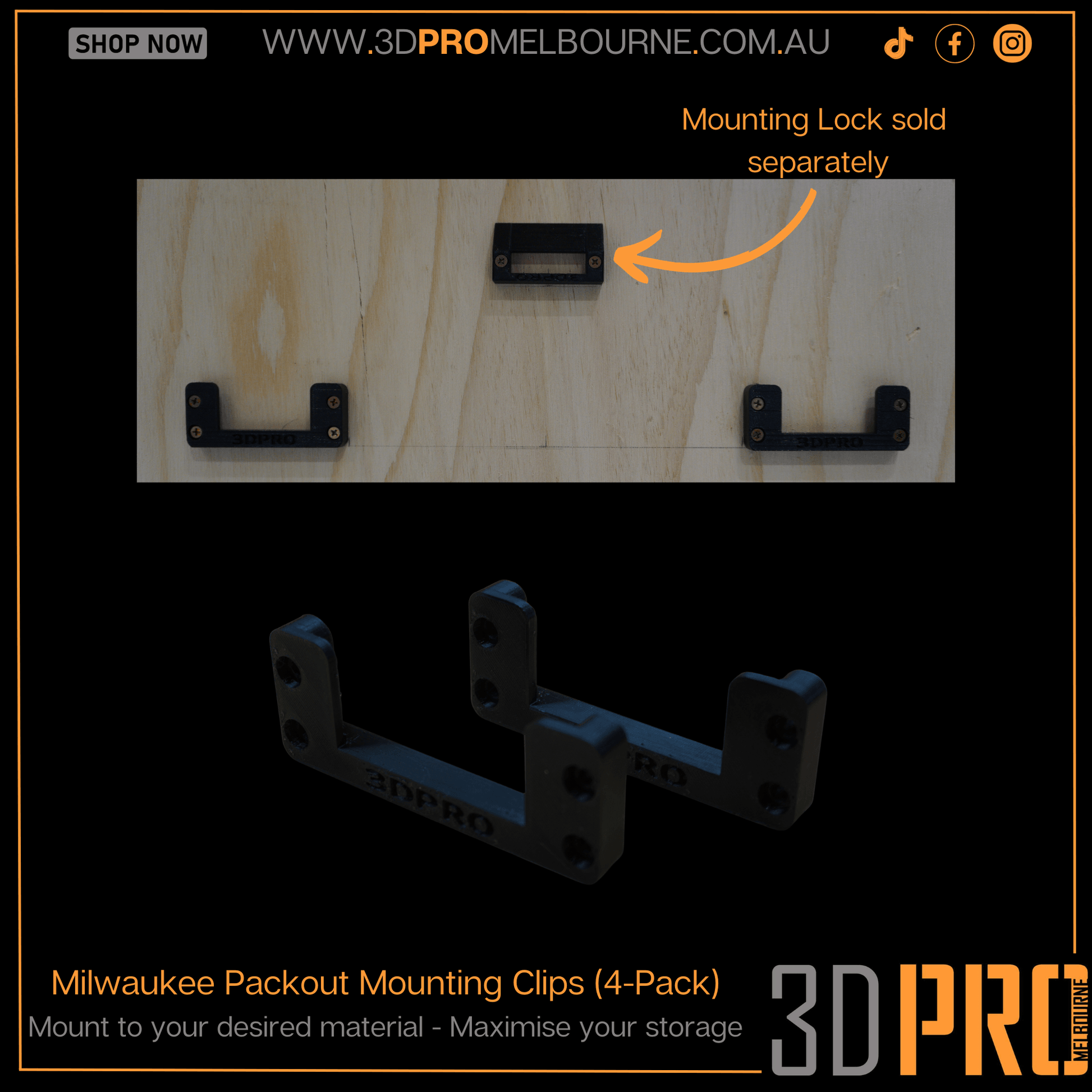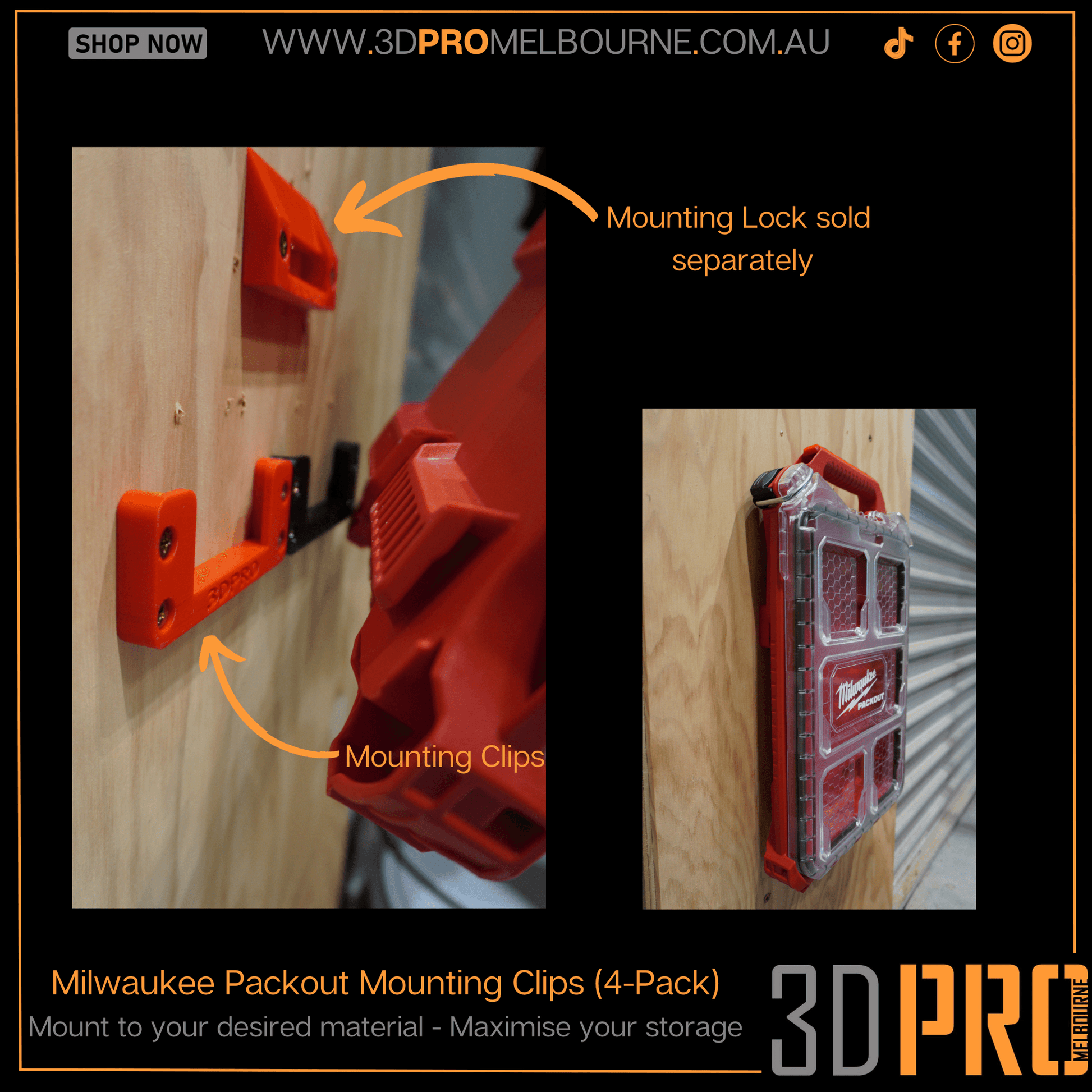 Mount your Milwaukee Packout gear anywhere — wall, floor, or van — with this 4-pack of mounting clips that screw in and let you slide your Packout straight on; works with all Packout items, but for vehicles we recommend adding our Mounting Lock for extra security.