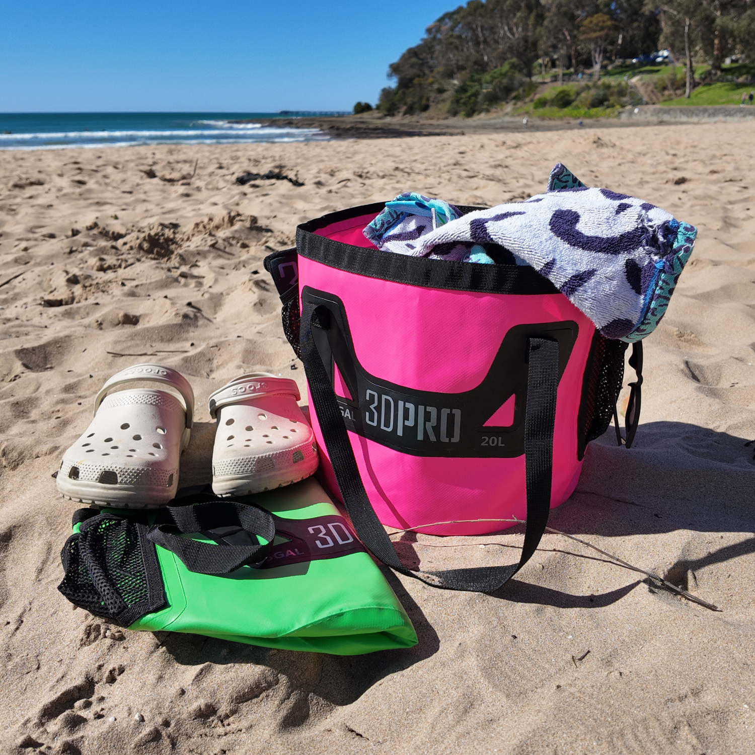 "Luke, the Founder of 3DPRO, knows how imporatant space savings is. That's why we created our Folding Buckets for every Beach goer. Helping everyone be more organised on and off the beach!
