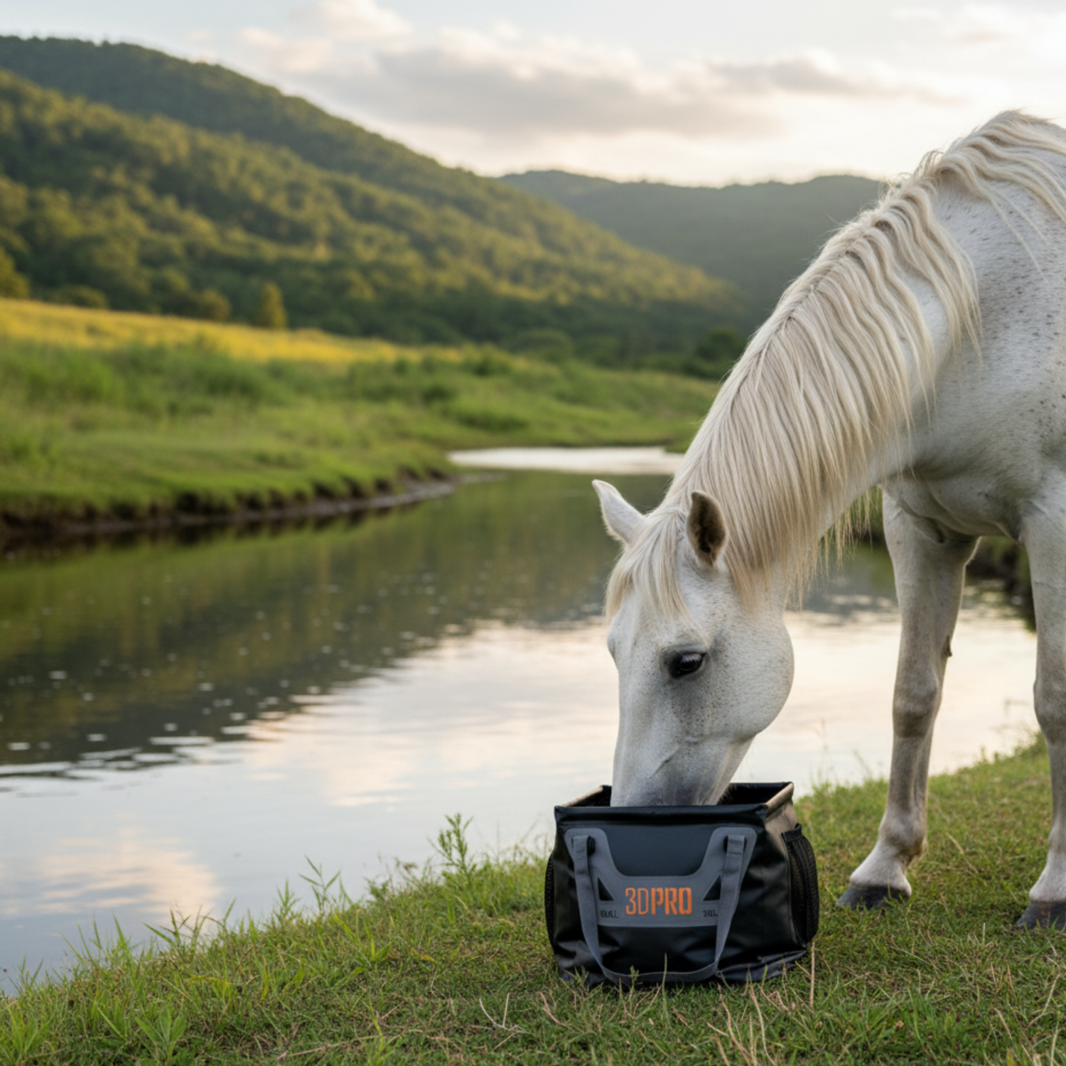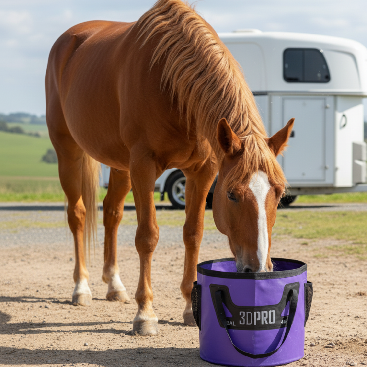 "Luke, the Founder of 3DPRO, knows how important space savings is. That's why we created our Folding Buckets for every horse lover! On the go feeding or water bucket in the horse float is a no brainer!