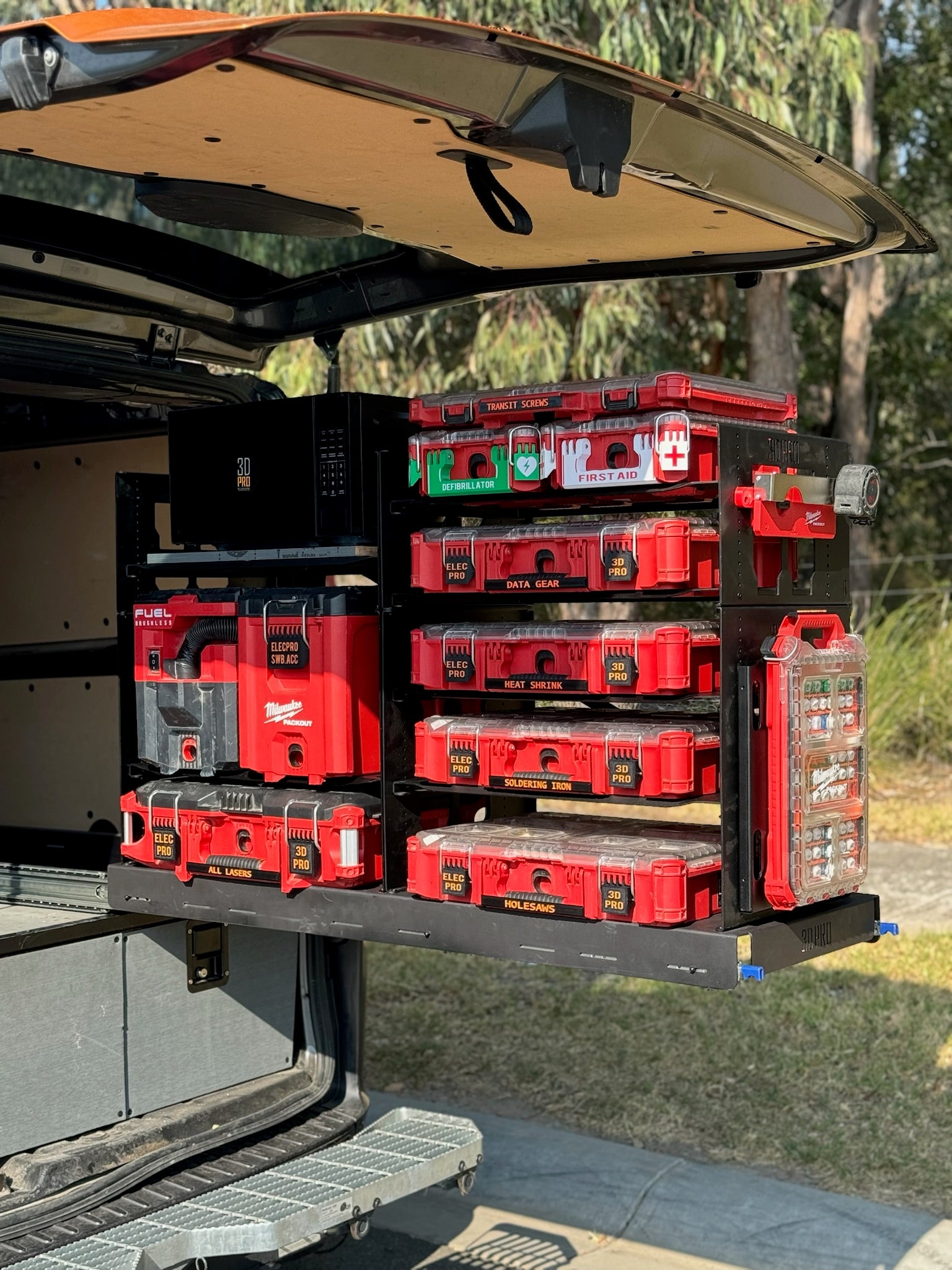 It all starts with organisation! Become a PRO Tradie with our Pack A Shelf Van Shelving, a modular shelving solution to maximise your storage, customise to your needs and make life easier for you on the job site so you can save time and make more profits!
