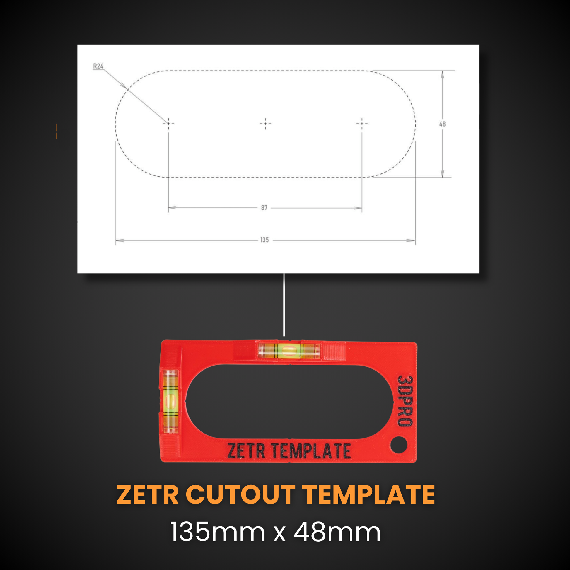 Our template comes with the following cut out dimensions: 135MM X 48MM TEMPLATE